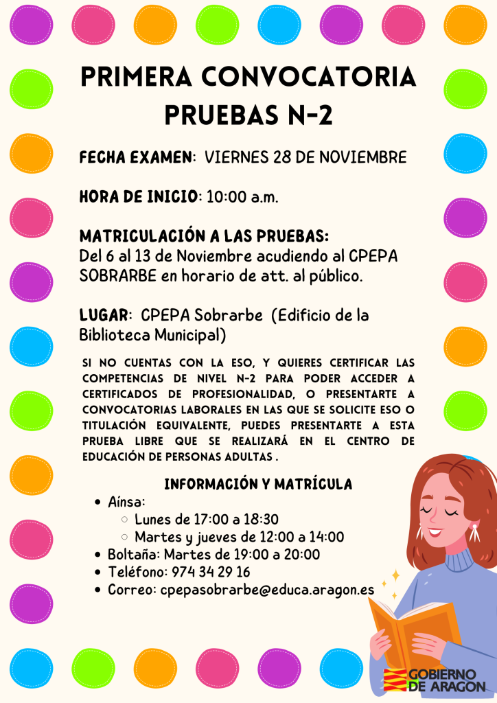 Ya tenemos fecha de la próxima convocatoria para las pruebas de acreditación de las Competencias N-2. ¡En el cartel tenéis toda la información!